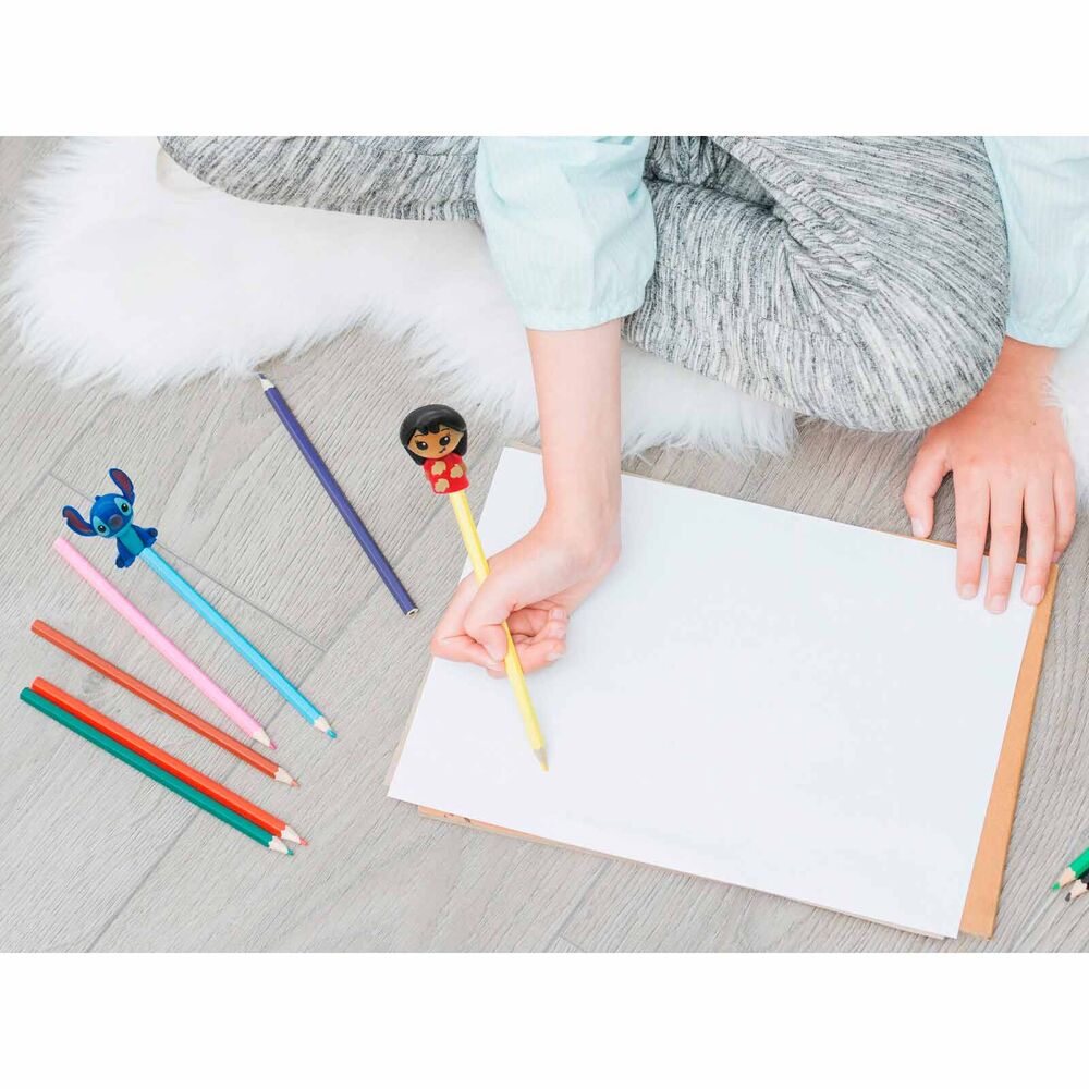 Tamaño blister: 12x13x4cm. Blister con 3 toppers para colocar en tus lápices y disfrutar de los personajes de Stitch. Contiene tres modelos de los cuales uno es sorpresa ¡decúbrelo al abrir tu sobre!