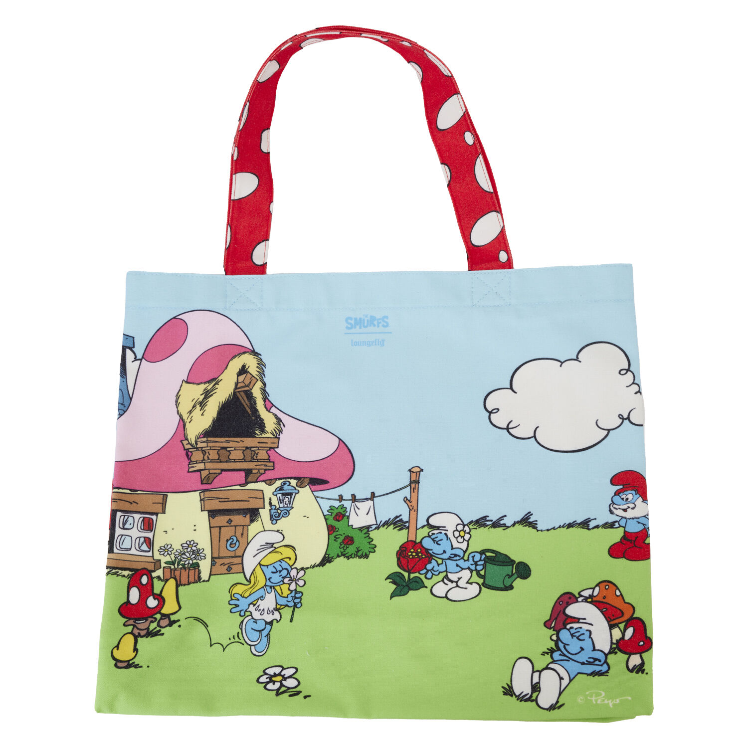 La Bolsa shopping Los Pitufos Loungefly es perfecta para quienes buscan un accesorio divertido y funcional, ideal para el uso diario o como regalo para los fanáticos de Los Pitufos.