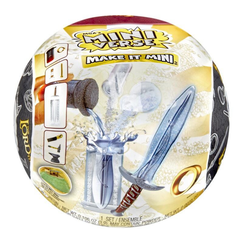 Edad: +8 años. Cápsula en forma de bola misteriosa. Construye tus miniaturas temáticas de El Señor de los Anillos con los ingredientes de tu paquete. Seca la resina en cualquier luz ultravioleta. Cada paquete tiene ingredientes únicos para hacer diferentes miniaturas temáticas de El Señor de los Anillos con las espadas y armas favoritas.