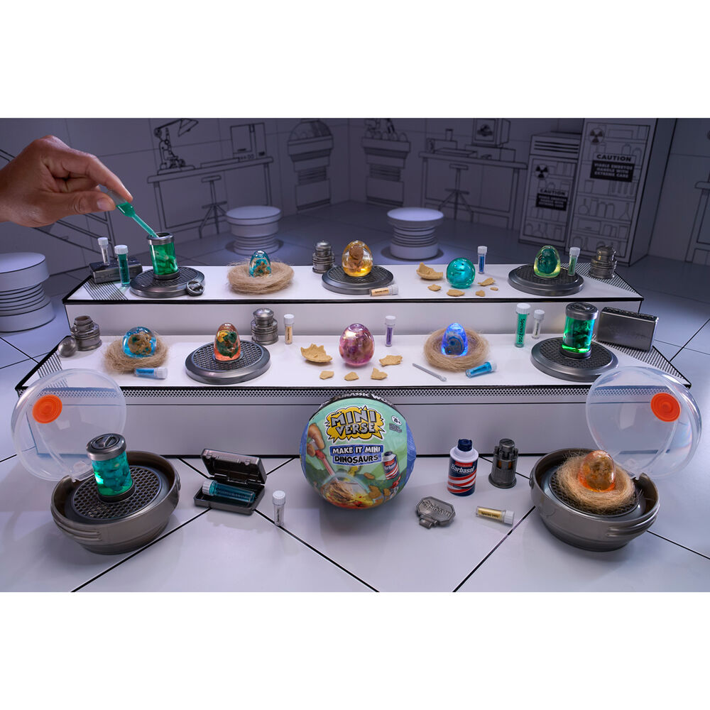 Edad: +8 años. Seguimos ampliando el target de Miniverse con una nueva licencia. Ahora podrás darle vida a tus propios dinosaurios como en la película. Manipula los huevos en tu mini laboratorio para descubrir qué dinosaurio te ha tocado. Tambien uedes crear Dinosaurios hibridos mezclando varios ADNS.