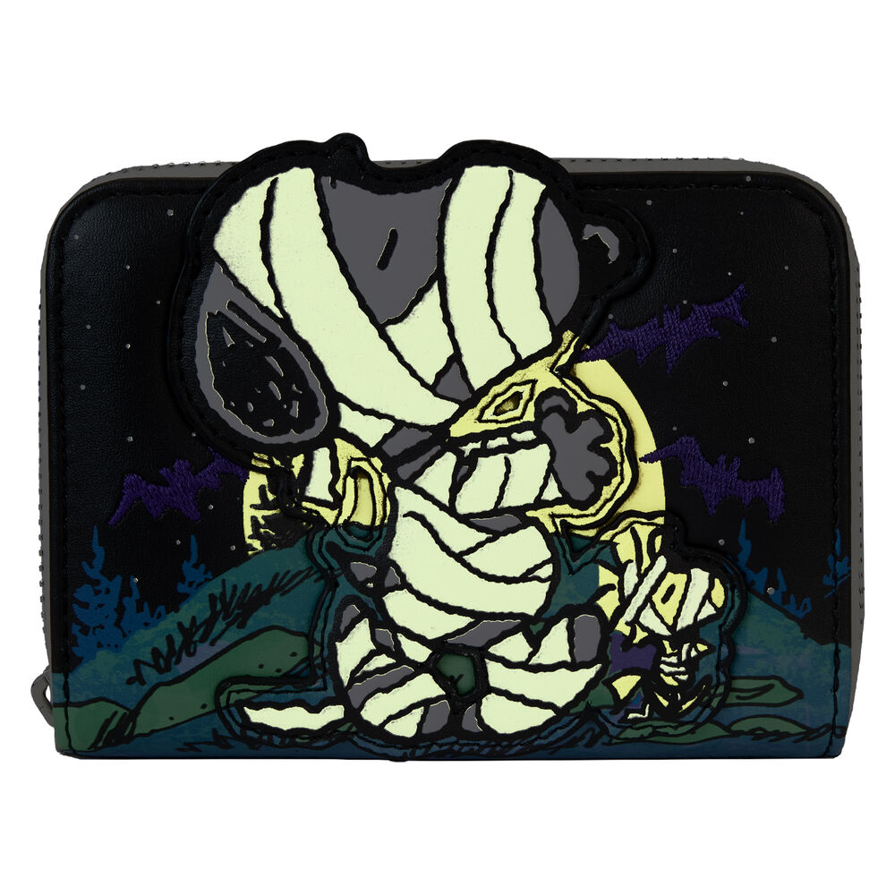 Billetera. Tamaño: 12,5x10cm. Piel vegana (poliuretano). Cierre de cremallera. Herrajes plateados brillantes. Cuatro ranuras para tarjetas. Ventana de identificación troquelada. Detalles en relieve, bordados, fosforescentes e impresos. Forro interior a juego.