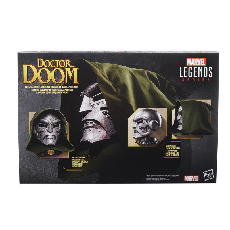 Edad: +14 años. Escala: 1:1. Viene con una correa interior ajustable (la correa contiene látex natural). Por primera vez en la historia de los artículos para juego de rol de Marvel Legends Series, el set viene con una capucha de tela removible que se puede fijar a la máscara del Doctor Muerte. Usa o exhibe este casco con o sin la capucha para imaginar distintas escenas inspiradas en el entretenimiento.