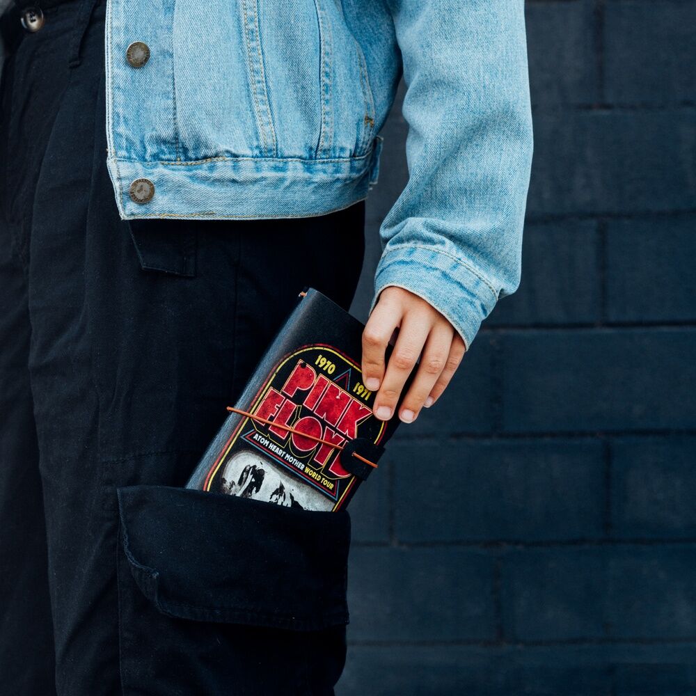 Tamaño: 19,5x12cm. Incluye 2 cuadernillos reemplazables de 80 hojas. Hojas interiores de dos tipos: bullet y lineas. Cuenta con espacio para tarjetas y un bolsillo interior. Tapa blanda de poliuretano con cierre de banda elástica.