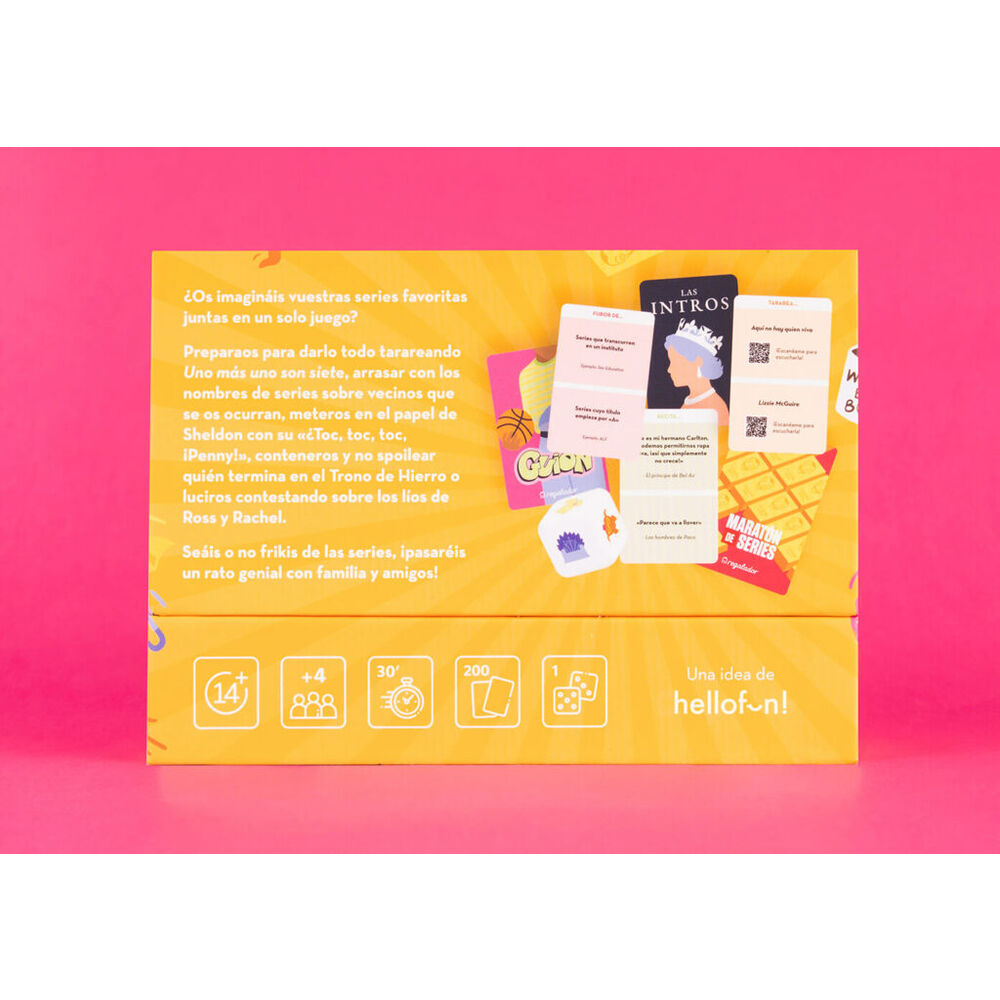 Idioma: Español. Tamaño: 14,8×10,8x7cm. Edad: +14 años. Numero de jugadores: +4. ¿Os imagináis vuestras series favoritas juntas en un solo juego? Seáis frikis o no de las series, ¡preparáos para un maratón de diversión con familia y amigos!
