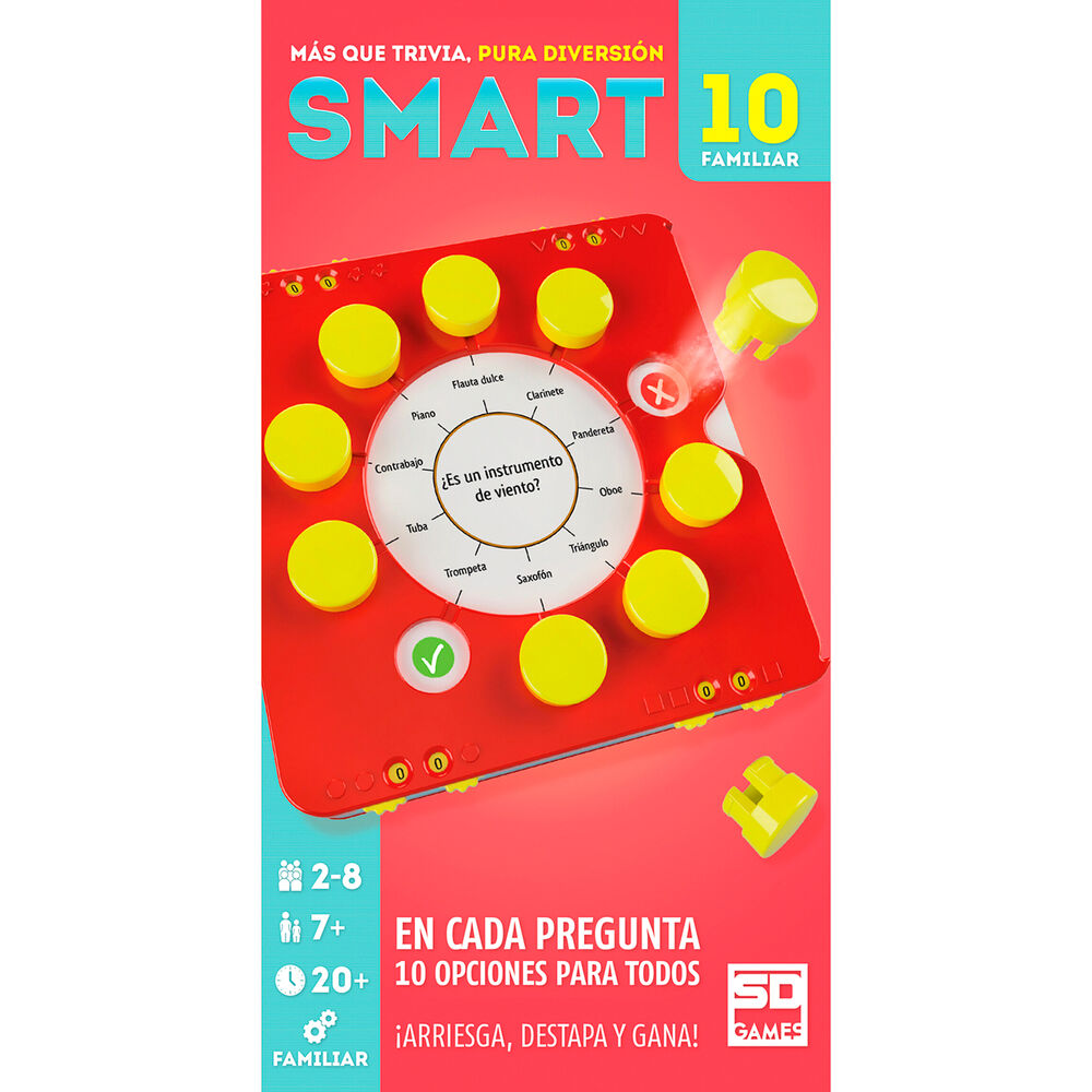 Idioma: Español. Edad: +7 años. Numero de jugadores: 2-8. Duracion de la partida: 20 minutos. La agilidad de Smart 10 ahora también adaptada a los miembros más jóvenes para que las partidas sean para toda la familia. Smart10 es un juego de preguntas donde los jugadores no deberán esperar demasiado su turno. Las preguntas ofrecen 10 posibles respuestas y todos los jugadores tendrán la oportunidad de contestar en cada una de las preguntas. Si tu respuesta es correcta, recibirás un marcador. Pero, ¿debes contestar o pasar? Recuerda que si no aseguras tus marcadores a tiempo, podrás terminar perdiéndolos todos. Todo el juego está incluido en la compacta caja Smart: las 200 preguntas y sus respectivas respuestas, los contadores de puntuación y los marcadores. No necesitarás nada más para empezar a jugar donde sea! Contiene: Caja Smart 10 Marcadores, 100 Tarjetas a doble cara con preguntas, 1 Reglamento.