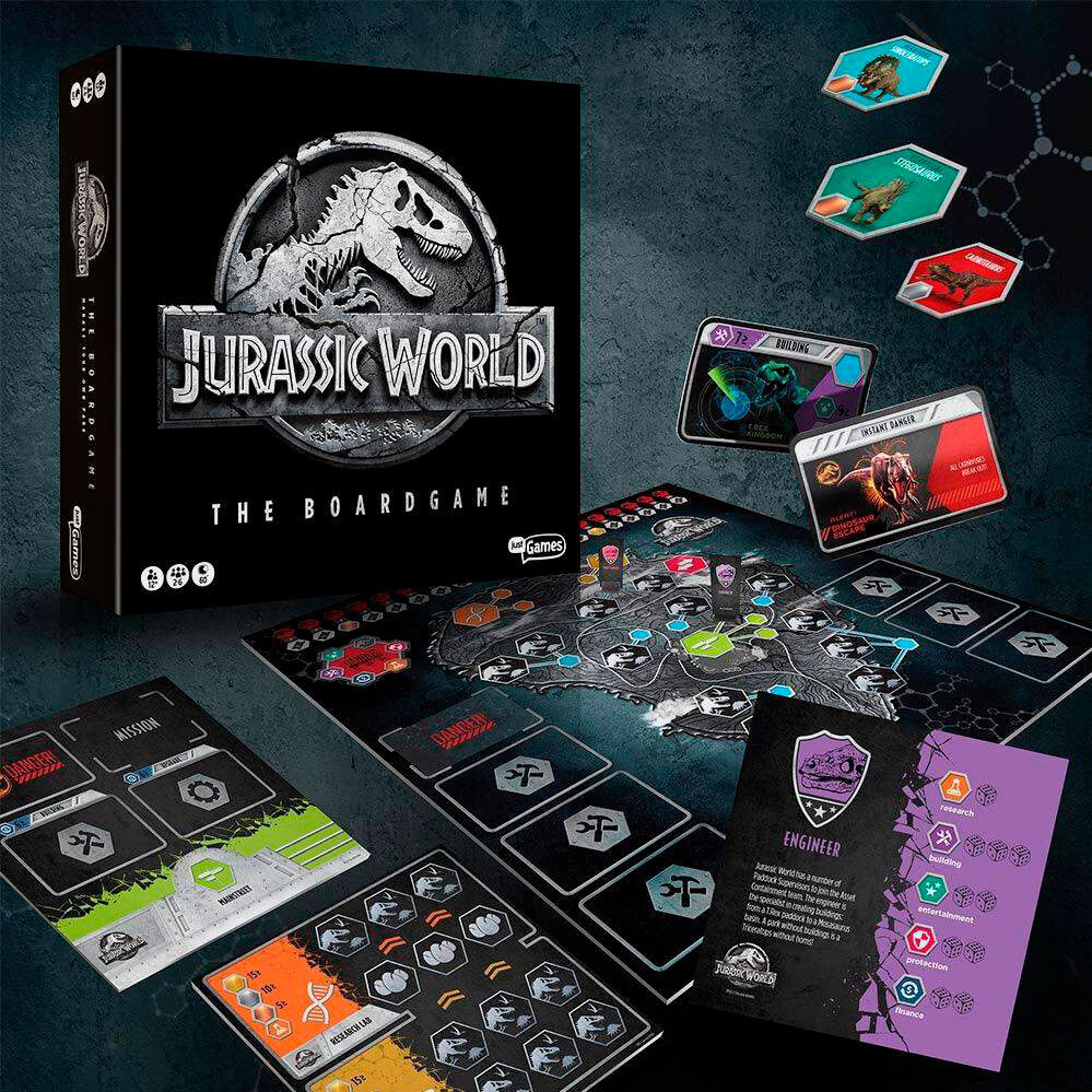 Edad: +12 años. Numero de jugadores: 2-4. Duracion de la partidad: 60 minutos. Reune a tus amigos y cread el parque tematico de dinosaurios mas grande y fascinante del mundo.