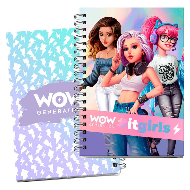 Libreta A5 de tapa dura de las WOW Generation. Sus 3 diseños de surtido son muy actuales y llamativos, totalmente a la moda para que tu hija vaya a la última. Es ideal para que la niña se la lleve a todas partes gracias a su tamaño y a la tapa dura, ya que las hojas de dentro están bien protegidas y no se dañan. Además, la libreta incluye una hoja de pegatinas para decorar todas sus creaciones. Consta de 80 hojas de 100 gr con diseño de líneas para apuntar cualquier tipo de notas o apuntes.
