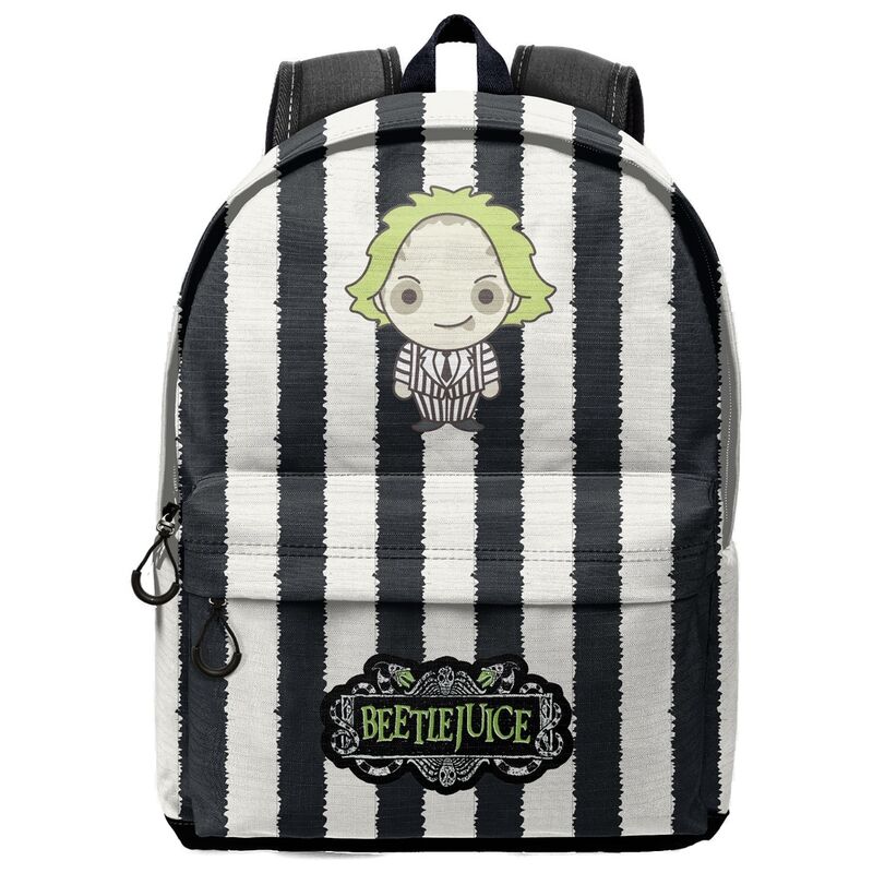 La Mochila Beetlejuice 44cm es el accesorio perfecto para los amantes de la famosa película de Tim Burton. Esta mochila destaca por su diseño original y atractivo, que representa a uno de los personajes más icónicos del cine de culto.