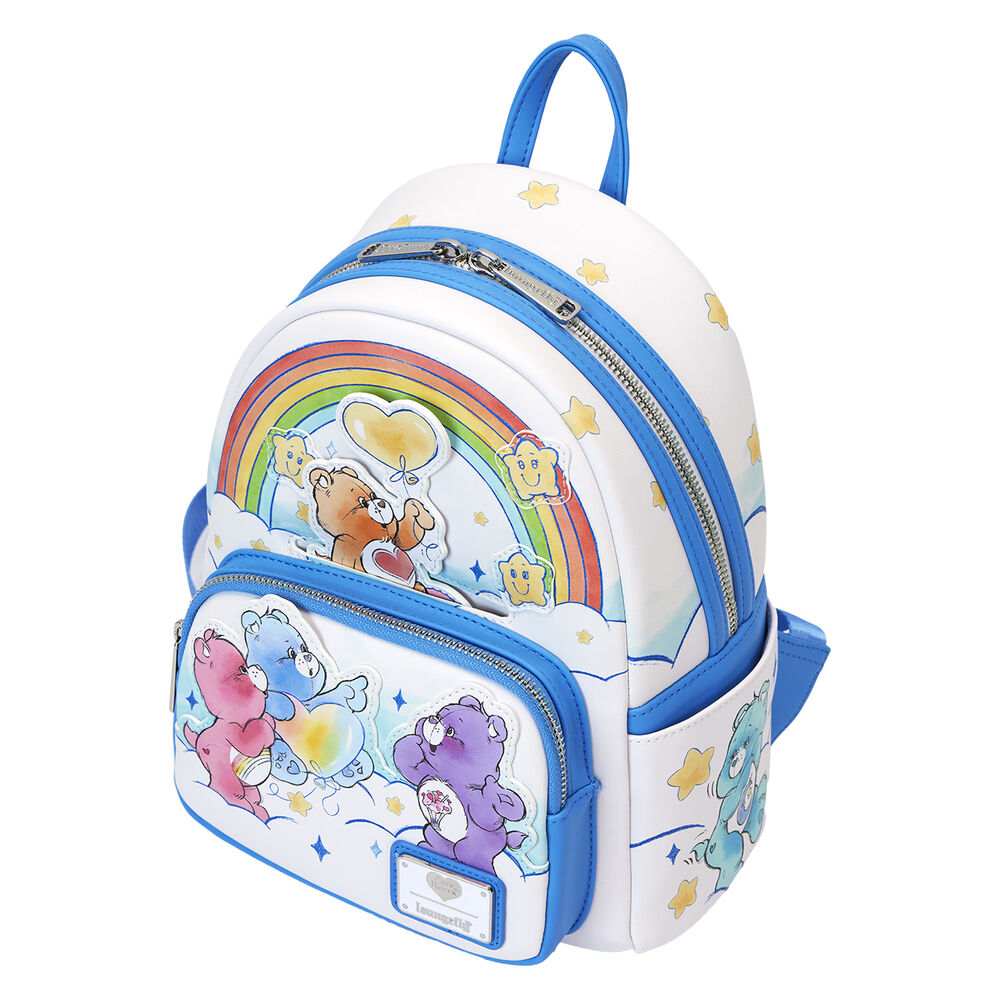 Care Bears. Tamaño: 22,86×11,43×26,67cm. Piel vegana (poliuretano). Tirantes ajustables y acolchados. Asa superior resistente. Ilustraciones de los personajes en todos los lados