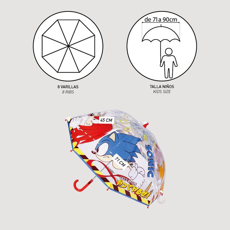 El Paraguas manual burbuja Sonic The Hedgehog es un accesorio ideal para los aficionados del famoso personaje de videojuegos. Con un diámetro de 45 cm, este paraguas no solo es funcional, sino que también presenta un diseño atractivo que encantará a los fans de Sonic.