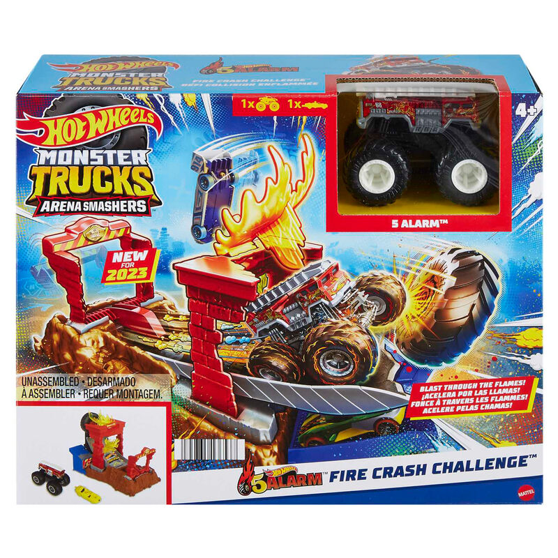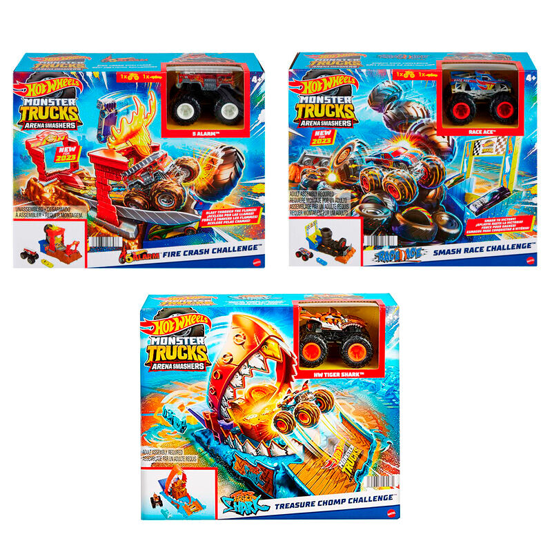 La Pista Reto de Destrucción Arena Smashers es ideal para niños a partir de 4 años y les ofrece una experiencia de juego emocionante, promoviendo la coordinación y las habilidades motoras mientras disfrutan de sus Monster Trucks favoritos.